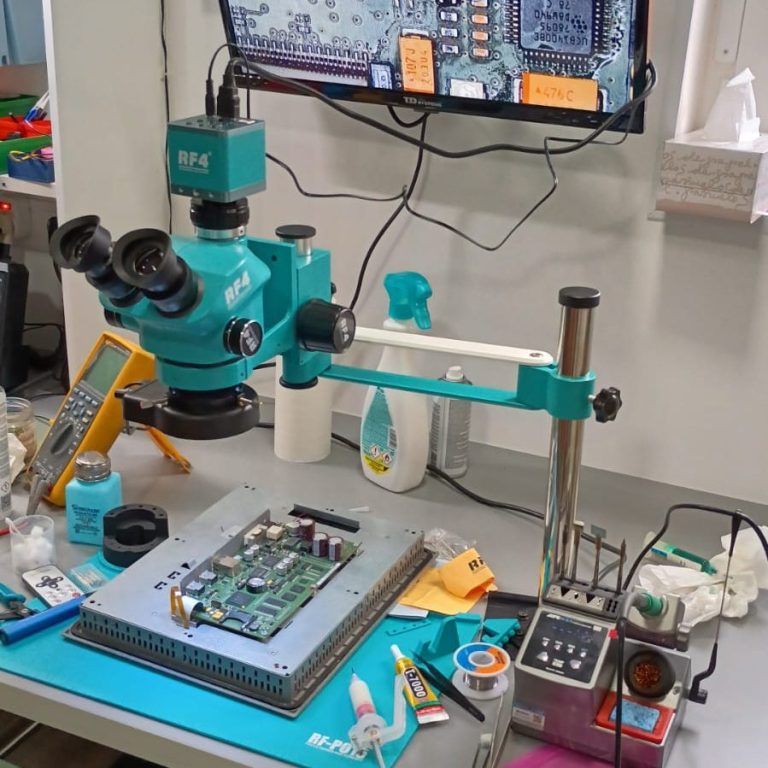 Aquí se nos puede ver con las manos en la masa repararando una pantalla SIMATIC